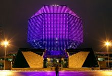 Поклонники подняли вверх картонные фигурки с младенцем